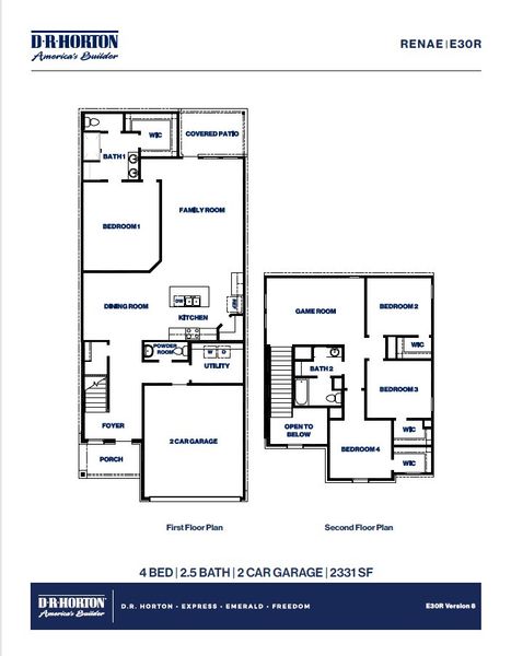 Welcome to our Renae/E30R floor plan, located in the Cypress Green community! This two-story house features four bedrooms, two-and-a-half bathrooms, a game room, and a two-car garage. This house spans 2,331 square feet and will be a lovely home for you and your family!