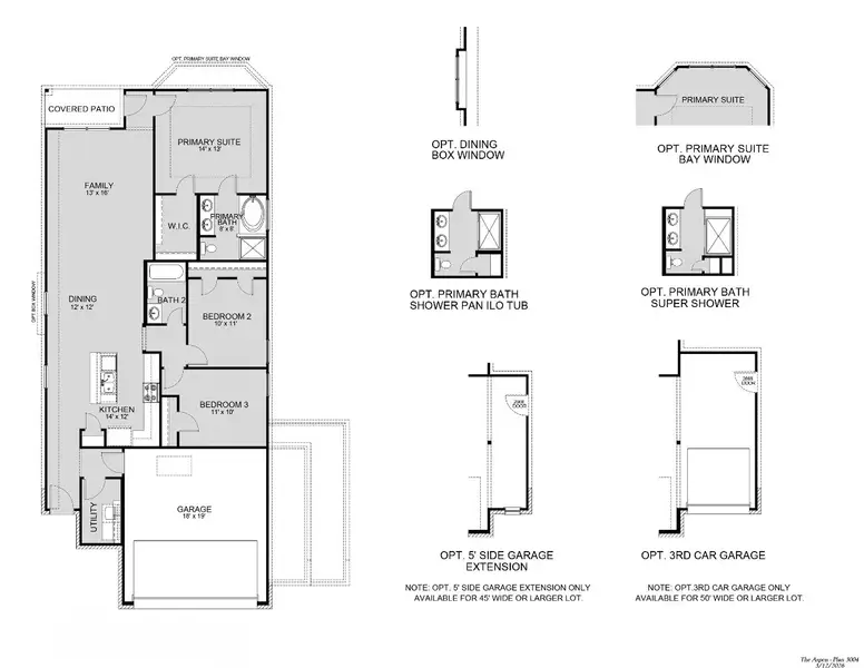 The Aspen is a 1-story single-family home featuring 3 bedrooms and 2 bathrooms with an island kitchen, spacious dining area, and large laundry room.