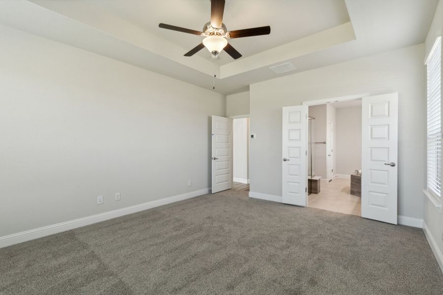 The private primary suite includes a spa-inspired bath with a soaking tub, a walk-in shower, and a large walk-in closet. Enjoy seamless indoor-outdoor living with a covered patio and a sliding glass door. Flexible spaces add versatility and comfort to this luxury new construction home.