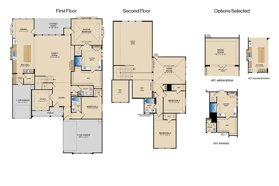 The Driscoll floor plan at 1502 Park Hills Boulevard is a 2 story home offering 4 bed, 3.5 bath living with a 3 car garage. The deluxe kitchen features 36" regency-style deluxe kitchen cabinets, quartz kitchen countertops, stainless steel kitchen appliances, a butlers pantry, and added LED disk lighting in kitchen accented by brushed nickel light fixtures. A study, media room, and game room provide flexible spaces for work and play. The primary suite is highlighted by a pop up ceiling in master bedroom. Outdoor enjoyment is enhanced by a covered patio with a gas drop for exterior gas location. Practical upgrades include full gutters around entire house for added durability.