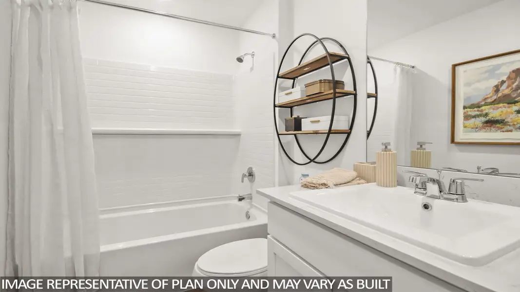 As you enter the home, you become aware of the two secondary bedrooms and the secondary bathroom near the foyer. The two secondary bedrooms each have carpet flooring, a tall closet, and a bright window that illuminates the rooms. In between the two bedrooms is the secondary bathroom, complete with vinyl floors, a linen nook, and a tub/shower combo.