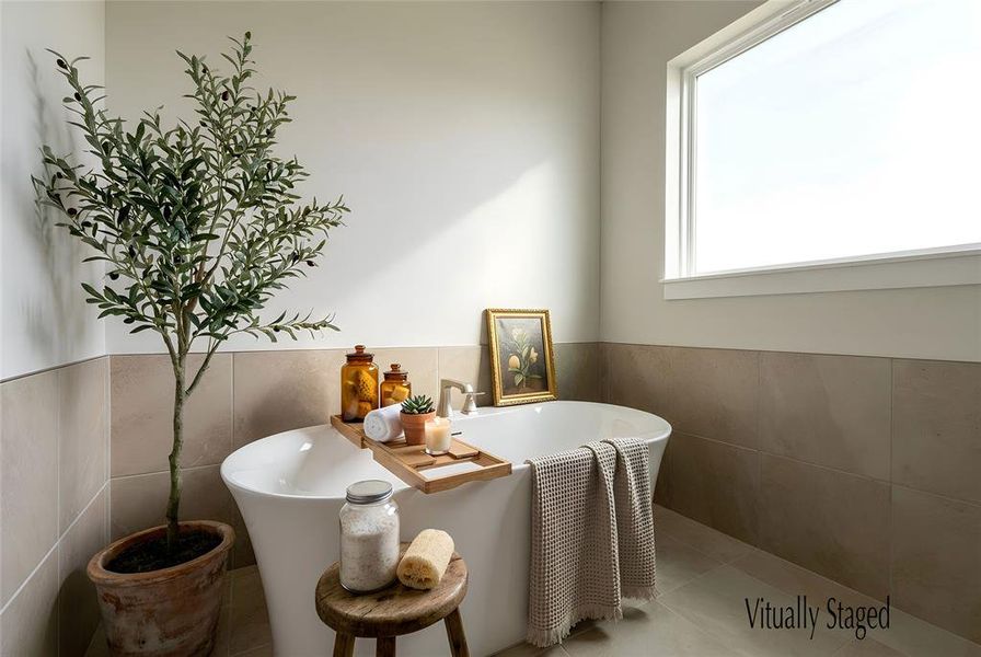 Retreat to the serene primary suite, designed for ultimate relaxation. Unwind in the freestanding soaking tub or enjoy a spa-like experience in the oversized shower. Just outside, a thoughtfully placed coffee bar adds a touch of everyday luxury to your morning routine.