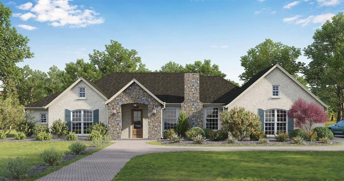 Discover this stunning new construction home situated on a full acre, ideally located just 25 minutes from Fort Worth and 10 minutes from the tollway—offering the perfect blend of privacy and convenience. Opportunities like this are rare in the rapidly growing area of Benbrook. This thoughtfully designed home features 3 bedrooms, a dedicated office, and 2.5 bathrooms. Engineered hardwood flooring flows throughout the main living areas and the spacious primary suite. The home is enhanced with custom cabinetry and detailed inlay work, adding both elegance and functionality. The laundry room includes a utility sink and ample storage.The exterior showcases a charming Cotswold cottage-inspired design with a cobblestone-accented facade, white-painted brick, striking black windows, and classic shutters. Inside, quartz countertops throughout tie together the home’s elevated finishes. This is a rare opportunity to own a custom-style home with acreage in a prime location.