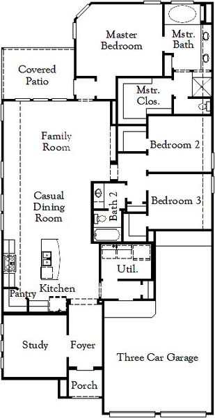 The Anton floor plan is a well-designed one-story home featuring three spacious bedrooms, two bathrooms, and a three-car garage. This layout is thoughtfully crafted to maximize both comfort and convenience, offering an open-concept design that seamlessly connects the kitchen, dining, and living areas. The owner's suite provides a peaceful retreat with a private bath and a walk-in closet, while the additional bedrooms are perfectly positioned for flexibility—whether used as guest rooms, a home office, or creative spaces. With its functional flow, modern finishes, and ample storage, the Anton is an inviting home designed for effortless everyday living.