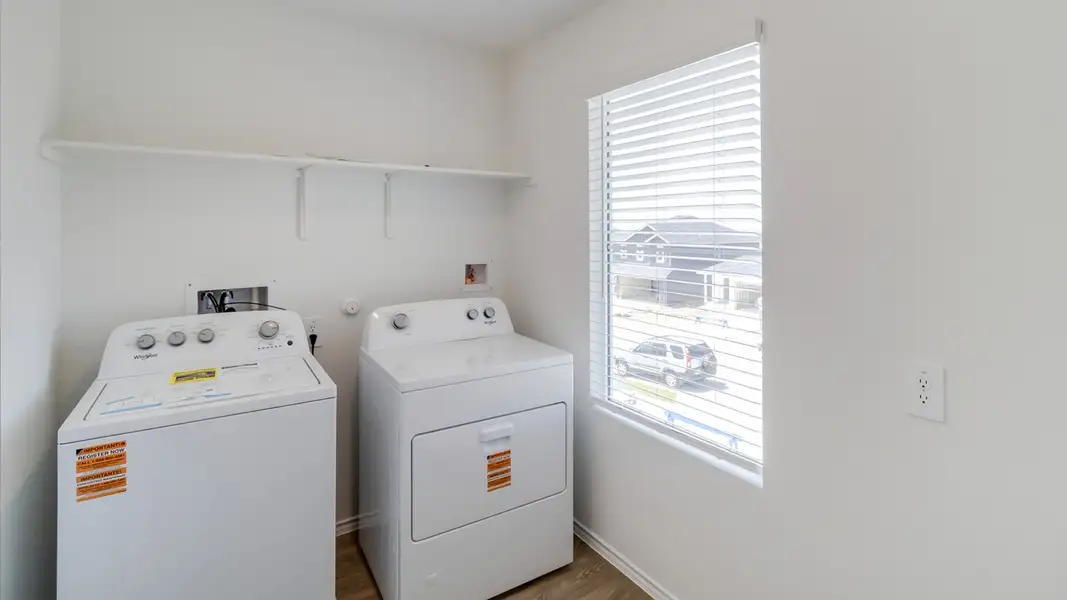 This home comes included with a professionally designed landscape package and our America's Smart Home® package that offers devices such as the Qolsys IQ Panel, Video Doorbell, Alarm.com app, Honeywell Thermostat, Deako Smart Light Switch, Kwikset Smart lock, and more.