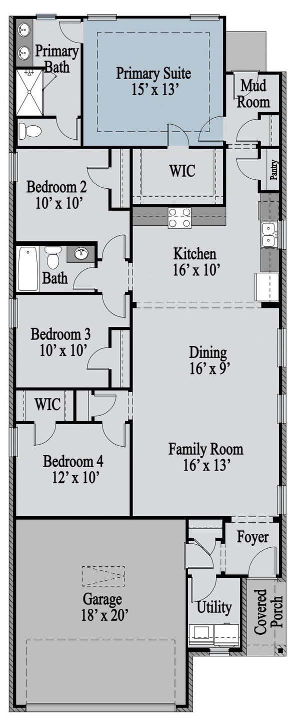 Well-designed contemporary living, indoors and out. The Chisholm’s enticing covered porch and entryway open to the spacious great room and desirable covered porch beyond. The well-equipped gourmet kitchen is highlighted by a large center island with breakfast bar, a pantry, and access to the dining room, the perfect layout for both formal and casual entertaining. A stunning primary bedroom is complete with spacious walk-in closet and luxurious master bath, featuring dual-sink vanity, glass-enclosed shower, and linen closet. The large secondary bedrooms share a well-appointed full bath. Additional highlights include a centrally-located utility room.