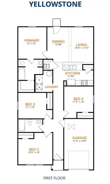 MLS# - Built by NHC - Jul 2026 completion! ~ Model 1401 B1 - Yellowstone The Yellowstone Plan from our Freedom Series is thoughtfully designed for comfort and convenience, offering 4 bedrooms, 2 bathrooms, and 1,401 square feet of single-story living. As you enter the home, you’ll find three secondary bedrooms and a full bathroom, perfectly positioned to provide privacy and flexibility for family members or guests. Continue down the hall, and you’ll pass the conveniently located laundry room before reaching the heart of the home. The open-concept kitchen, complete with a central island, seamlessly overlooks the family room and dining area, creating a welcoming space for family time, meals, and for entertaining. Tucked off the dining area, the primary suite features a private bathroom and walk-in closet, offering a peaceful retreat from the rest of the home.