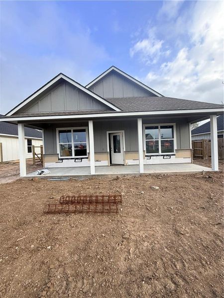 Discover a beautifully designed 3-bed, 2-bath home that perfectly blends modern aesthetics with functional living. Step inside to an open-concept living area where natural light floods through large windows, highlighting the luxury vinyl flooring that flows seamlessly throughout the main spaces. The heart of this home is the oversized kitchen with GAS stove/oven combo.. The space is further enhanced by an upgraded kitchen backsplash, setting a sophisticated tone that balances both elegance and practicality. Each of the three spacious bedrooms is adorned with plush carpeting, providing a cozy and inviting atmosphere. The primary bedroom includes an en-suite bath designed for relaxation with thoughtful finishes and ample storage. Exterior features elevate this home’s appeal, with a charming front porch that invites leisurely morning coffees and a small back porch perfect for intimate outdoor moments. **Photos are of a previously built home, finishes will be similar but not exact.