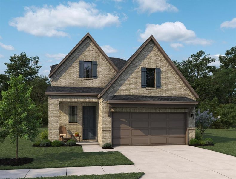 Modern Exterior style with interior functionality, the Marigold home plan offers an inviting open-concept design perfect for everyday living & entertaining. The heart of the home is a open concept Livingroom with soaring 2 story ceilings. The 1st-floor primary suite serves as a private retreat, featuring a spa-inspired bath with soaking tub, separate shower, & walk-in closet. 1st Floor also includes a second bedroom retreat. Upstairs, additional bedrooms & a flexible loft space. This home features the AW Collection® Oxford, with warm wood stained cabinetry, deep finishes, and grand textures that create a timeless, traditional space perfect for both entertaining and relaxing. Located in Emory Glen in Magnolia, TX, residents enjoy resort-style amenities including a pavilion, walking trails, playground, splash pad, & resort-style pool.