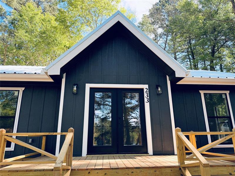 Brand new construction with spectacular view located in Quitman, Texas. This cozy new build features two bedrooms and two baths with a spacious open concept living space. The split floor plan features two primary suites with full-size bathrooms and double vanities. Located on a tree line street, the awesome front porch is the perfect location for you to see the stunning view of the lake from your rocking chair. This new build has some terrific amenities like financially economical mini split heat and air, rain gutters with guards and spray foam insulation. The builder used beautiful finishes, including matte black faucets and hardware, marble like bathroom tiles and beautiful flooring. There are brand new stainless steel appliances and so much more!
