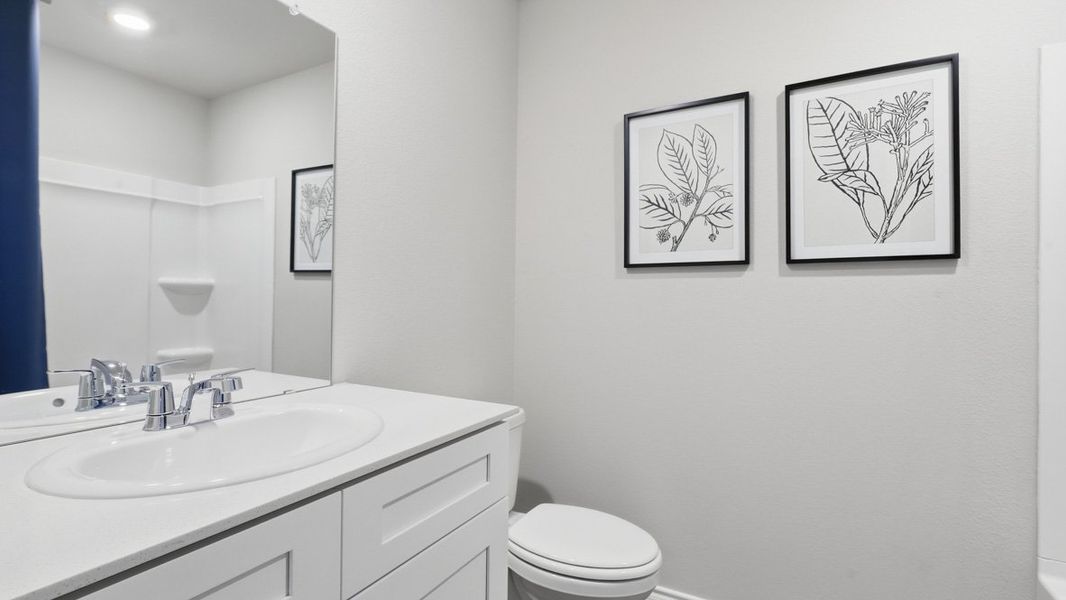 The private primary suite is conveniently located on the first floor and includes a spacious bedroom, a walk-in closet, and a full ensuite bath. A secondary bedroom and full bathroom on the main level provide flexible space for guests or a home office. Upstairs, additional bedrooms are thoughtfully arranged around a large loft that offers versatile space for a game room, media area, or second living room. A dedicated laundry room, hallway storage, and direct access to the two-car garage adds to everyday convenience. A covered rear patio completes the design, extending your living space outdoors and providing a relaxing place to unwind. With its multi-level layout, generous living areas, and flexible bonus space, the Midland delivers comfort, functionality, and room to grow a wide range of lifestyles.