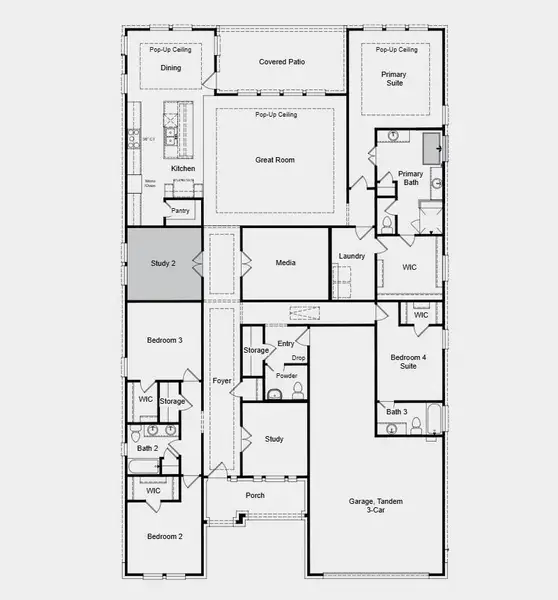 - Primary Bedroom On MainKitchenPowder RoomMedia RoomOffice/StudyGuest RoomDining RoomOpen Concept FloorplanPrimary Bedroom Downstairs