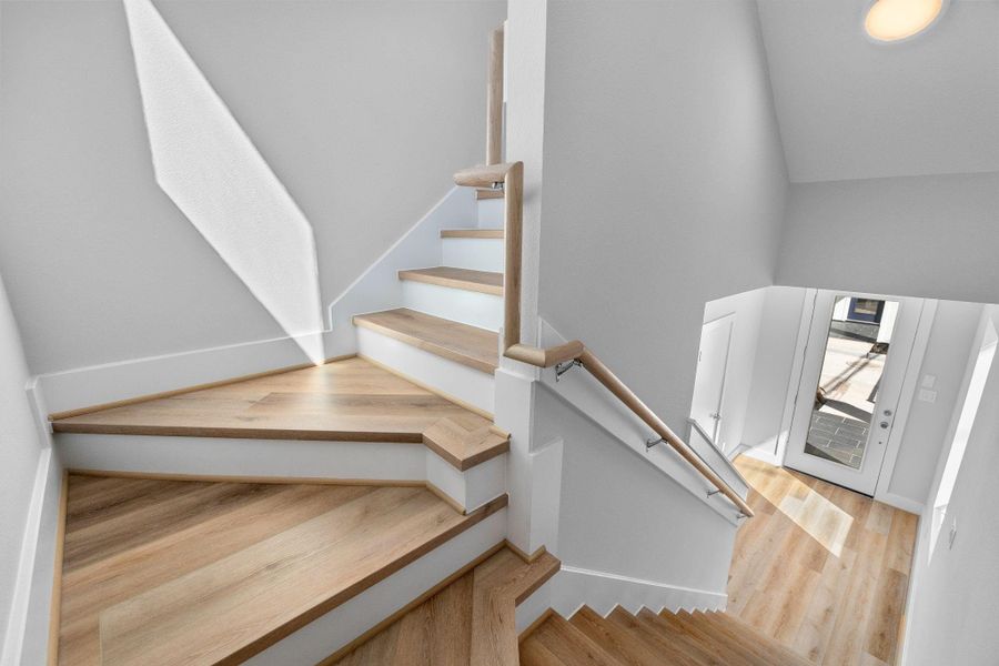 Brand-new 3-story homes located just minutes from Downtown Houston in a gated community. This modern home offers 3 bedrooms and 3.5 bathrooms with a functional open-concept layout, high ceilings, and abundant natural light throughout. The main living area features wide-plank flooring and flows seamlessly into a stylish kitchen with quartz countertops, stainless steel appliances, a large island, and designer backsplash. You get views of Downtown houston from the kitchen! Enjoy a private balcony off the living space, perfect for relaxing or entertaining. The spacious primary suite includes tray ceilings, a large walk-in closet, and a spa-like bathroom with a freestanding soaking tub and oversized walk-in shower. Secondary bedrooms offer en-suite bathrooms for added privacy. Additional highlights include a gated entry, attached garage, and convenient access to major freeways, dining, and entertainment. Development comes with an extra parking spot. 6 total homes here, with 3 available now