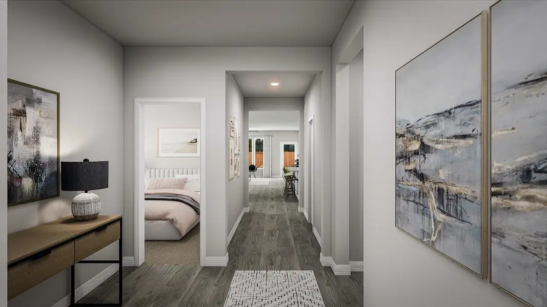 This home offers a welcoming layout where the kitchen, dining area, and great room connect in a bright, comfortable way that feels easy to live in day to day. Architectural touches like the coffered great room ceiling and covered patio give the main living spaces extra presence, while the private primary suite and secondary bedrooms keep the home practical and well balanced. Altogether, the design feels polished, efficient, and well suited for both everyday routines and casual entertaining.
