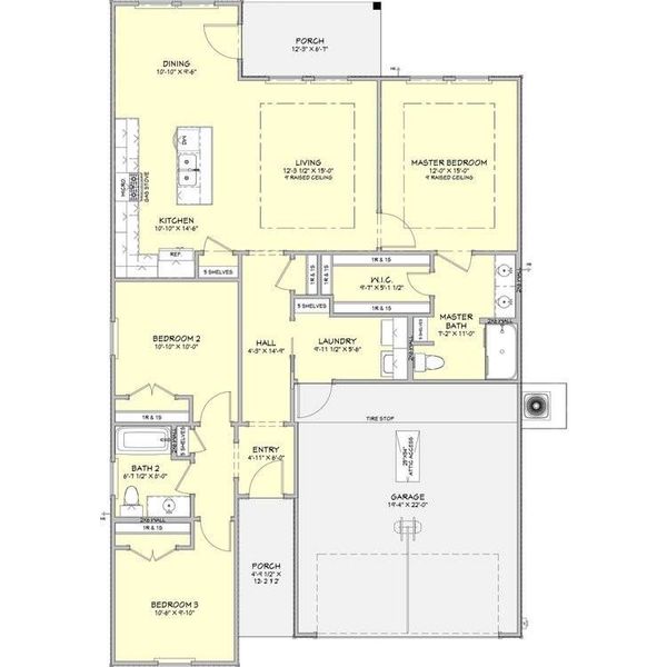 Welcome to this beautifully designed 3-bedroom, 2-bath home with a 2-car garage, featuring a bright open-concept layout and raised ceilings in the living area and primary bedroom. The modern kitchen offers quartz countertops, a large island, and under-cabinet lighting, flowing seamlessly into the dining and living spaces. The private primary bedroom includes a walk-in closet and en-suite bath, while two additional bedrooms provide space for family or guests. Enjoy luxury waterproof vinyl flooring throughout for durability and style. Additional highlights include a dedicated laundry room, generator plug, and covered front and back porches—perfect for relaxing or entertaining.