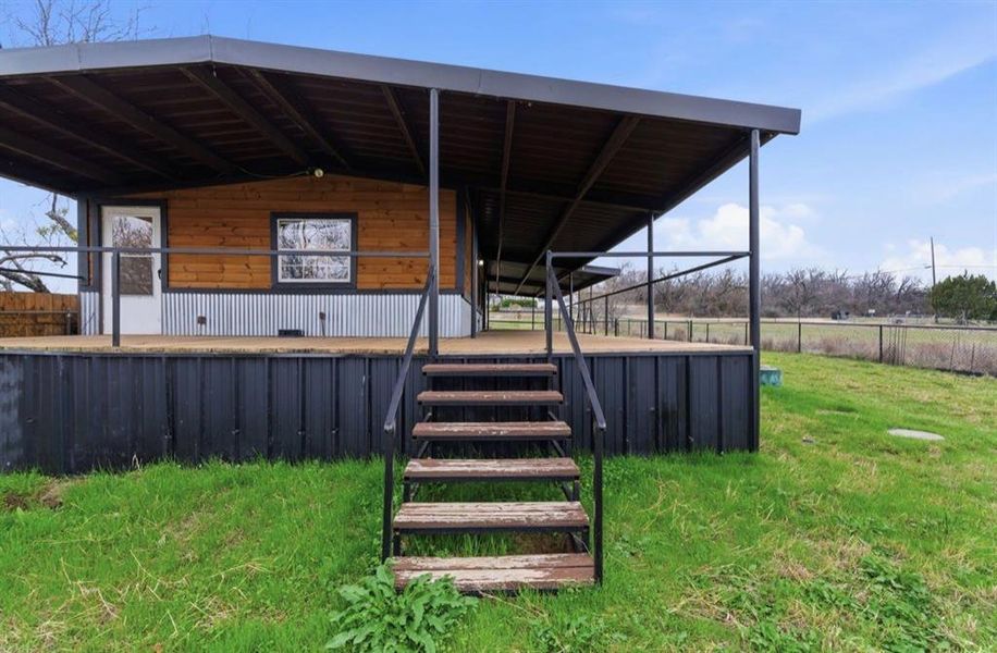 Outside, the property includes covered parking, fenced yard space, and a walkway leading to the private dock extending toward the lake, making it easy to enjoy fishing, boating, and time on the water.