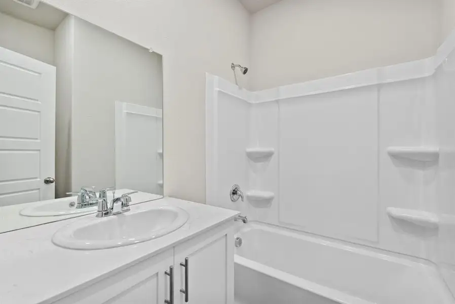 The Acorn is a smartly designed single-story home offering approximately 1,300 sq. ft. of living space with 3 bedrooms, 2 bathrooms, and a 2-car garage. A welcoming front porch opens into the entryway and leads into an open-concept main living area where the kitchen, dining space, and family room connect in one bright, comfortable layout, perfect for everyday living and easy entertaining. The kitchen features stainless steel appliances, ample counter space, and a center island with a sink overlooking the family room, plus convenient pantry storage. The adjacent dining area flows seamlessly into the family room, creating an inviting space to gather. The private primary suite is thoughtfully separated from the secondary bedrooms and includes a spacious bedroom, walk-in closet, and an ensuite bath. Two additional bedrooms are located on the opposite side of the home, each with its own closet and convenient access to the secondary bathroom. A dedicated laundry area and direct access to the two-car garage add everyday convenience. At the rear of the home, the patio extends your living space outdoors for relaxing or entertaining. With its open living design and well-planned bedroom separation, the Acorn offers comfort, functionality, and flexibility for a variety of lifestyles.