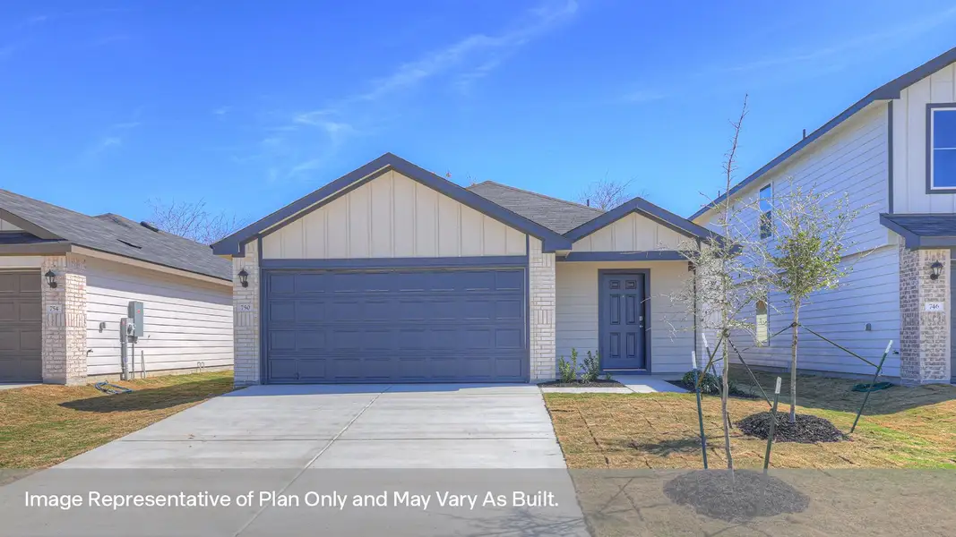 Step inside the Caprock at Lantana in Lockhart, Texas. This one-story new home offers 3 bedrooms, 2 bathrooms and a 2-car garage across 1,434 square feet of living space. Our homes in Lantana feature front masonry exteriors, and the Caprock is available in 2 exterior options.