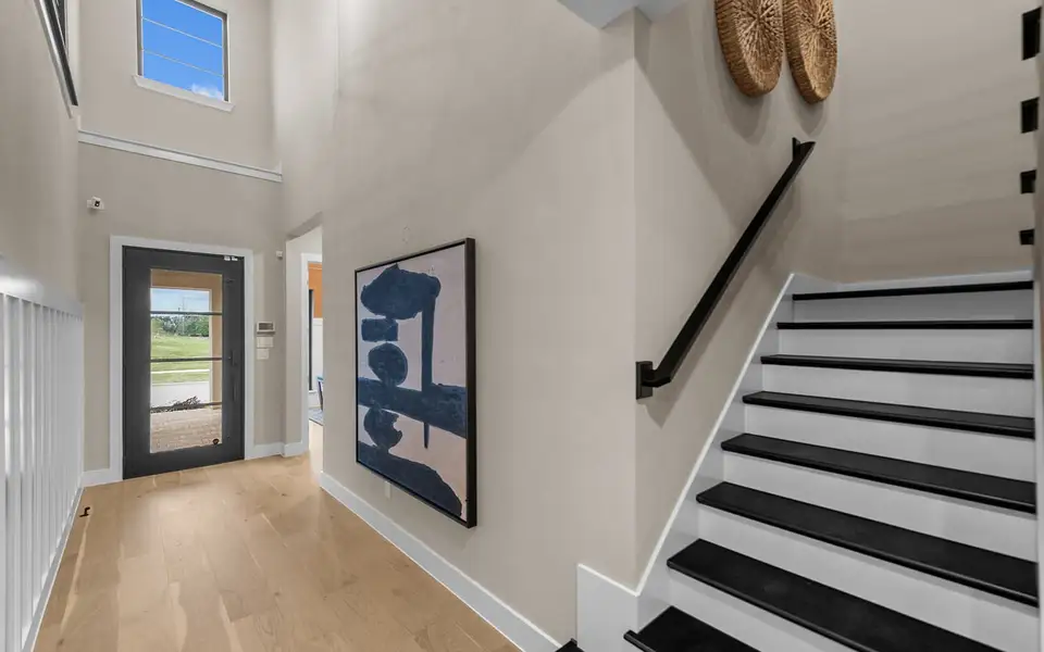 With a dramatic two-story entryway, the Denison makes a big impression. Guests enter off the generous front porch, passing under the second-story walkway before entering the two-story open-concept great room, awash in natural light from the many windows. A gallery-style walkway provides a view to the bedrooms above, as well as to the second floor game room, the ideal spot for an additional living area, library, or playroom. In the rear of the home, the Primary bedroom provides a quiet retreat. Add elegance with the optional tray ceiling. Homeowners love the large walk-in closet that connects directly to the utility room for easy laundry access. A separate study and additional media room provide even more space for families that need lots of space to live and work. Don't miss the option to turn the media room into a tandem garage, the perfect spot to store a boat or golf cart or to create a man cave. The mud room drop zone off the garage keeps things tidy, creating a home for back-packs, coats, and sports equipment.