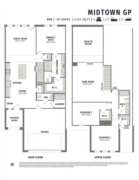CB JENI HOMES EVA floor plan. This beautifully designed EVA floor plan offers 3 bedrooms, 2.5 baths, and a highly desirable downstairs primary suite. The home features a dramatic vaulted ceiling in the living room, creating an open, airy atmosphere filled with natural light throughout. The main level showcases elegant hard-surface flooring, an expansive living area, and a gourmet kitchen ideal for both everyday living and entertaining. The kitchen is appointed with an oversized island, sleek quartz countertops, stainless steel appliances, a gas range, and exterior venting. The spacious primary suite on the main level provides a private retreat, complete with an elegant ensuite bathroom featuring dual vanities, a large walk-in shower, and an oversized walk-in closet. Upstairs, you’ll find a generous game room, two well-appointed guest bedrooms—each with walk-in closets—and a large shared bathroom with double vanity. Abundant storage is thoughtfully incorporated throughout the home. Step outside to enjoy the fenced backyard with an oversized patio, perfect for outdoor entertaining or relaxing. With numerous upgrades and design features throughout, this home offers exceptional comfort, style, and functionality.