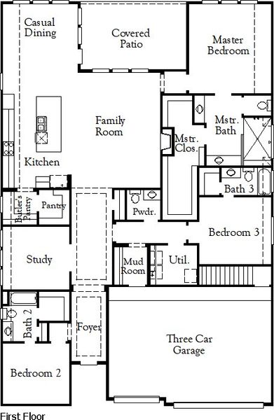 The Live Oak floor plan is a thoughtfully designed one-story home offering three bedrooms and three and a half bathrooms. This layout includes a three-car garage and a spacious open-concept living area that brings together the kitchen, casual dining, and family room for comfortable everyday living and entertaining. The private primary suite features a well-appointed bathroom and generous walk-in closet, while the secondary bedrooms each have convenient access to their own baths. A dedicated study adds flexibility for working from home or quiet retreat, and abundant storage—including a Texas basement—enhances functionality. With its smart layout and inviting design, the Live Oak floor plan delivers both comfort and versatility.