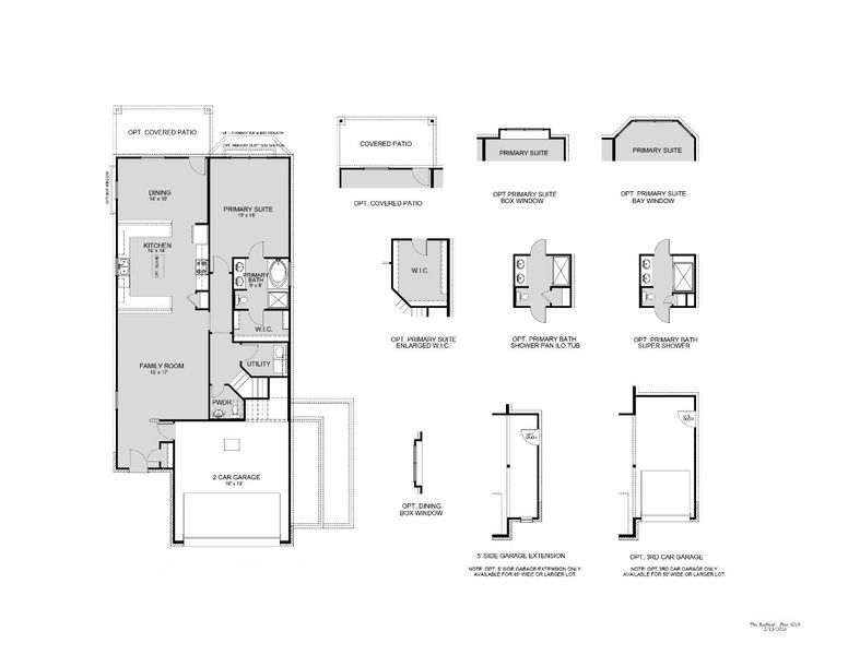 The Redbud is a 2-story home with 4 bedrooms, 2.5 baths, and features a kitchen with abundant counter space, an oversized 1st floor primary suite, and large upstairs game room and media room.