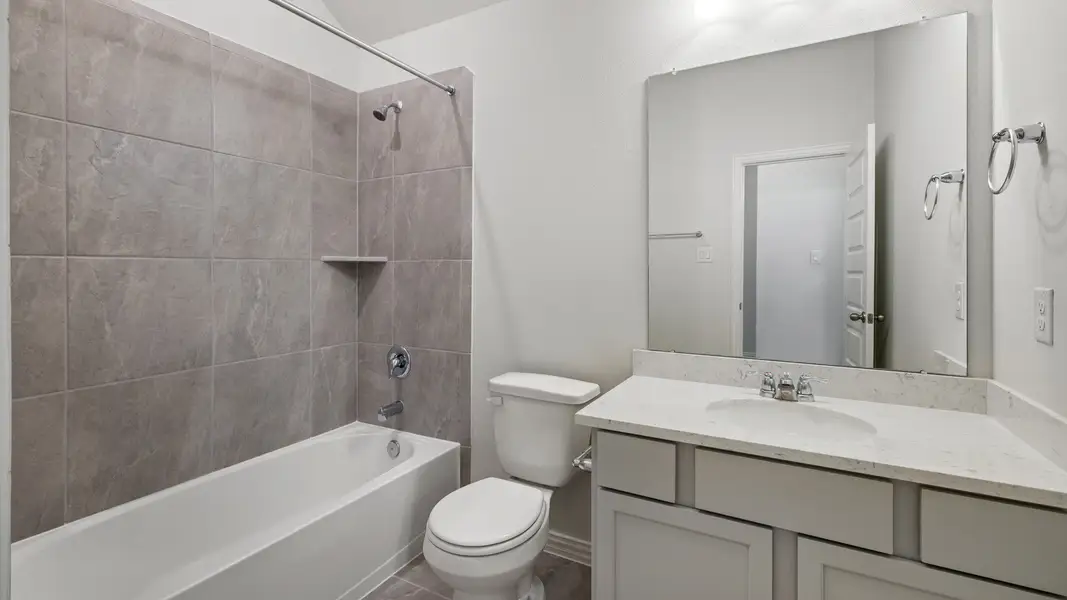 Toward the front of the home, two secondary bedrooms share a full bath, allowing flexibility for guests, family, or a home office setup. Tucked away behind the kitchen, a flex space, full bath, and a third bedroom offer additional space. With the option to convert the flex space into a fifth bedroom or study, homeowners can make this space their own.