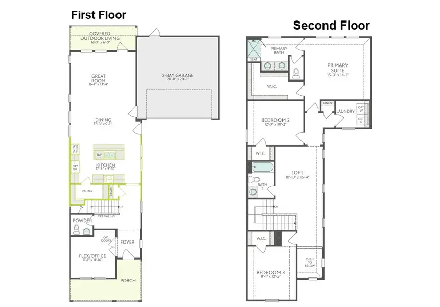 The Saffron offers 3 bedrooms, 2.5 baths, and a luxury kitchen that anchors the home’s open-concept layout. With 8′ doors, open rail on both the first and second floors, and gas to the patio, it’s designed for seamless indoor-outdoor living and everyday comfort.
