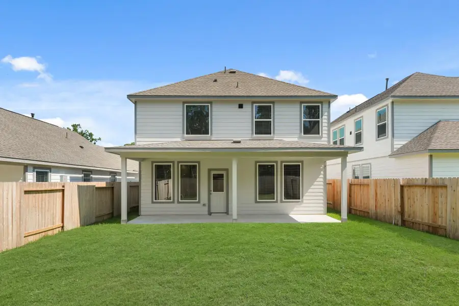 LONG LAKE NEW CONSTRUCTION – Welcome to 6423 Old Cypress Landing Lane, located in the Cypresswood Landing community and zoned to Aldine ISD. This inviting floor plan includes 3 bedrooms, 2 full baths, 1 half bath, and an attached 2-car garage. Inside, the home showcases thoughtful upgrades such as a spacious primary suite with dual vanities, a 42" tub with separate shower, and ceiling fans in both the family room and primary bedroom. The kitchen is highlighted by under-cabinet and pendant lighting, creating a warm and functional space. Additional features include stylish metal balusters on the staircase, 2" faux wood blinds throughout, and black exterior coach lights. Step outside to enjoy the covered rear patio, sprinkler system, and front gutters, completing this beautifully designed home. Don’t miss out on all this home has to offer—call today to schedule your private showing!