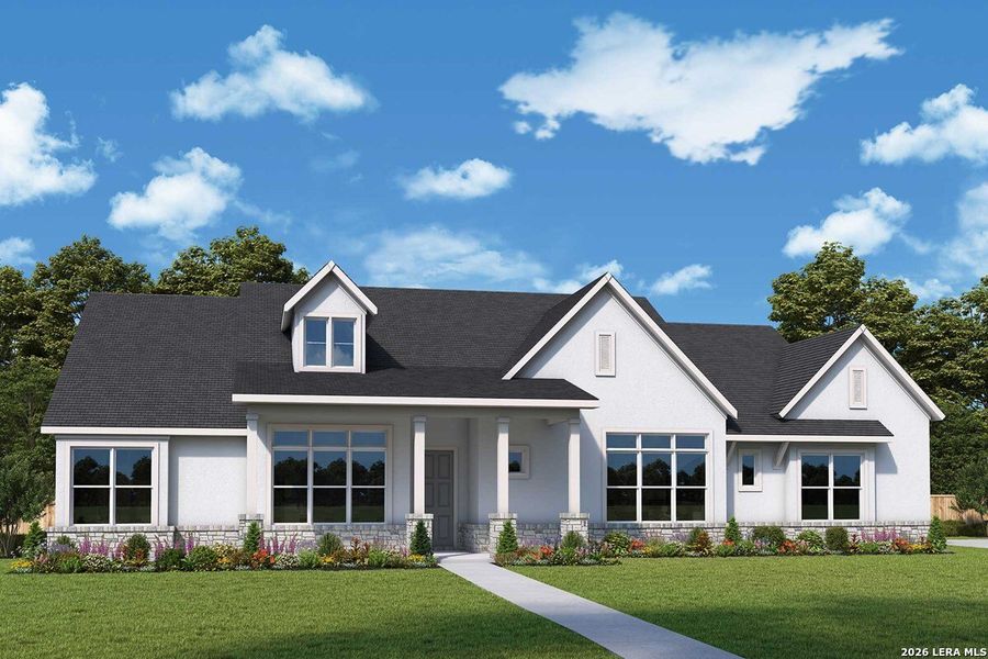 Welcome to Thornebrook, Bulverde's premier new gated community, where privacy, space, and luxury come together on stunning 1 acre home sites. Stunning new construction by David Weekley Homes situated on a beautifully treed 1-acre lot. This thoughtfully designed single-story home offers 4 bedrooms, 3 full baths, and a study-ideal for working from home. The open-concept floor plan features a spacious family room flowing seamlessly into the gourmet kitchen and dining area, perfect for everyday living and entertaining. The owner's retreat provides a relaxing escape with a well-appointed ensuite bath and generous walk-in spa like shower. Enjoy outdoor living year-round with a covered patio overlooking the expansive, tree-filled backyard. A 3-car side-load garage enhances curb appeal while providing ample parking and storage space. A rare opportunity to own a new home on acreage with privacy, functionality, and modern design.