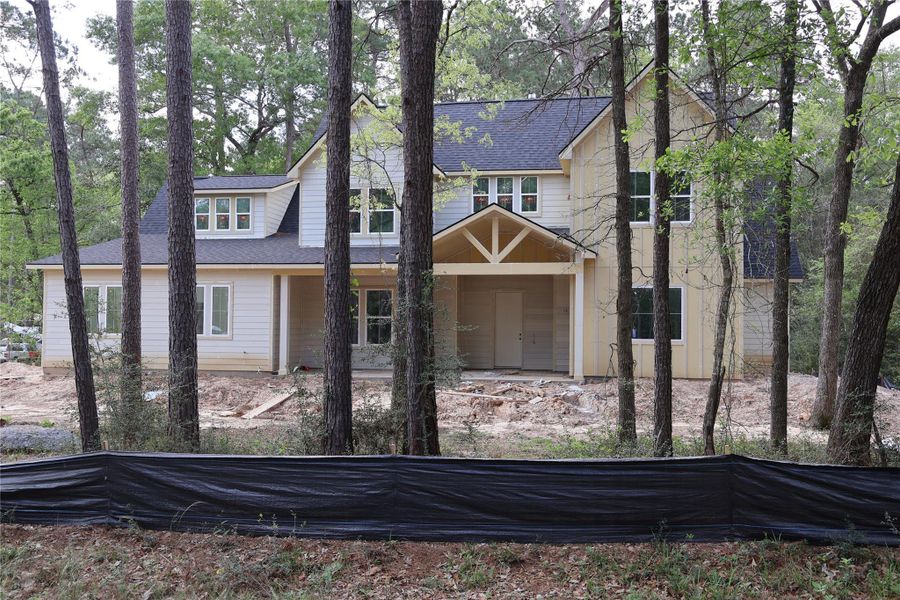 Discover luxury in this stunning new construction modern farmhouse, set on acreage in Magnolia's Clear Creek Forest and zoned to acclaimed Magnolia ISD. Slated for early summer 2026 completion, this 4 bedroom, 3.5 bath estate blends architectural drama with curated designer finishes. The main level features, a soaring great room, and a culinary dream kitchen boasting light-wood shaker cabinetry, marble-pattern quartz counters, modern backsplash tile, brass pendants, and sleek matte black hardware complimented by a butler pantry. The private main-floor primary retreat offers a spa-like bath with a freestanding tub, large-format grey shower tile, and a massive walk-in closet. A mudroom, laundry, and 3-car garage ensure everyday functionality. Upstairs, find a central game room, a versatile bonus room, and three large secondary bedrooms with walk-in closets. Complete with sweeping front and rear covered porches and light wood-finish floors, this home offers the ultimate acreage lifestyle.
