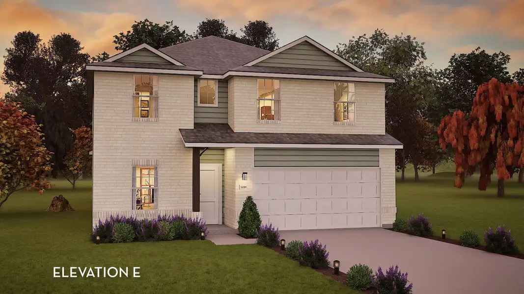 Every square foot is maximized with our Concho plan – the ideal home for the growing family. This 4-bedroom home offers space, flexibility and comfort. Entering your new home from your spacious porch, you are met with a foyer leading to your secluded study room. If you are looking for a little more living space, opt to transform the study room into your fifth bedroom! Travel further down the hall and you will discover the entry to your walk-in utility room and the convenient downstairs powder room. Need a little more room for your tools or holiday decorations? Luckily, the Concho plan bears an optional 2.5-car garage! Past the utility room, and you are led to the heart of the home - the open-concept, two-story family room adjoined by the oversized kitchen and breakfast area. The kitchen accommodates sleek granite countertops, flat-panel birch cabinets (with the option to add more), as well as a kitchen island! One of the most exclusive options this floor plan offers is the ability to add in an extended covered patio off the kitchen area. Talk about the perfect outdoor sanctuary! Finally, the first floor holds your private master suite with an elegant master bathroom. The master bathroom holds cultured marble countertops with the option of dual vanities, a shower/bathtub enclosure, and an expansive walk-in closet! If you are interested in taking the bathroom space to the next level you have the option to turn your bathtub into a super shower, or opt for a luxury tub with shower - both with standard dual vanities! Roam up the stairs to the second floor which is filled with three additional bedrooms, two full bathrooms and an oversized game room perfect for game nights with the family. In the Concho home, you will never have to sacrifice your space or comfort. There is something for the entire family to enjoy! With the copious amounts of included features and favorable options, you can bring your visions to life and will truly cherish your new CastleRock Concho home!