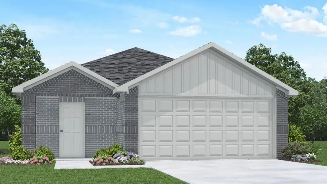 You have arrived at the Caprock Plan, located in the Sunterra community. Featuring 2 classic front exteriors, this 3-bedroom, 2-bathroom home also offers 1,435 square feet of living space and a 2-car garage.