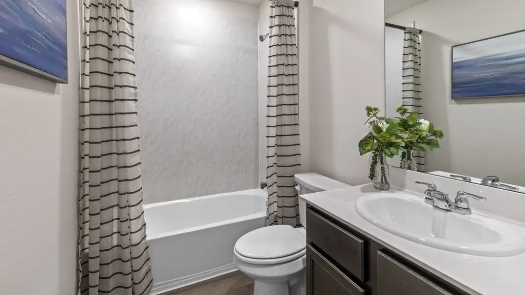 The Jayhawk is a one-story floorplan featured in our Windrose community in the charming city of Pilot Point, Texas. With 2 beautiful farmhouse style elevations to choose from, the Jayhawk is sure to fit all your needs. Inside this 4 bedroom, 2 bathroom home, you’ll find 1,899 square feet of comfortable living. The living area is an open concept, where your kitchen, living, and dining areas blend seamlessly into a space perfect for everyday living and entertaining. The kitchen features a large island, which is sure to make meal prep easy.