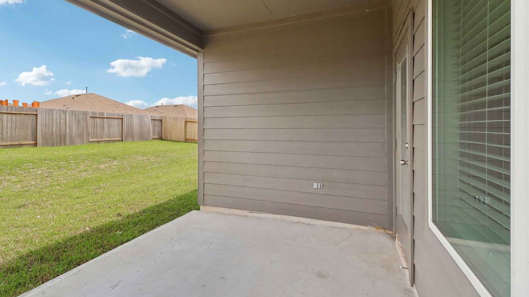 Exiting the home through the back patio, which is equipped with overhead lights and a place to relax, you can enjoy the great outdoors through the comfort of your backyard!