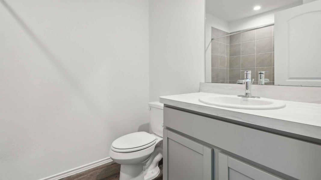 Upon entering the home, you will notice on one side of the foyer two secondary bedrooms that have access to a secondary bathroom. Each of the secondary bedrooms have carpet flooring, a tall closet, and a bright window that illuminates the bedrooms. The secondary bathroom lies in between the two secondary bedrooms and is finished with vinyl floors, a tub/shower combo, and a linen nook. A linen closet sits adjacent to the entryway of the secondary bathroom.