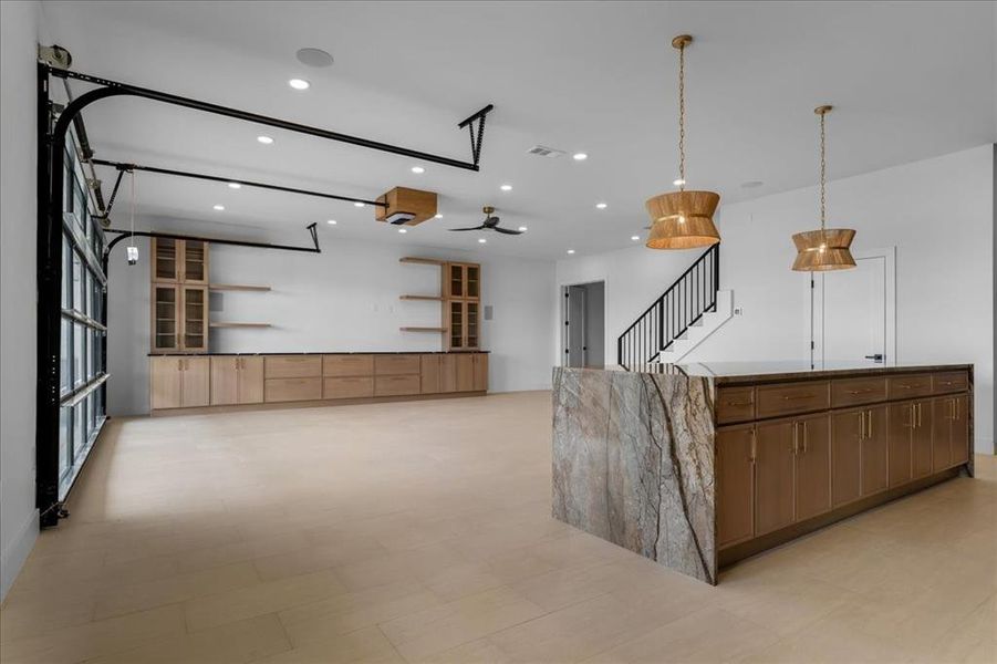 Inside, luxury finishes define the home, including custom cabinetry, designer lighting, a dramatic butler’s pantry, and a show-stopping primary closet with center island and vanity. The residence offers 7 total bedrooms, plus 8 full bathrooms and 3 half baths.
