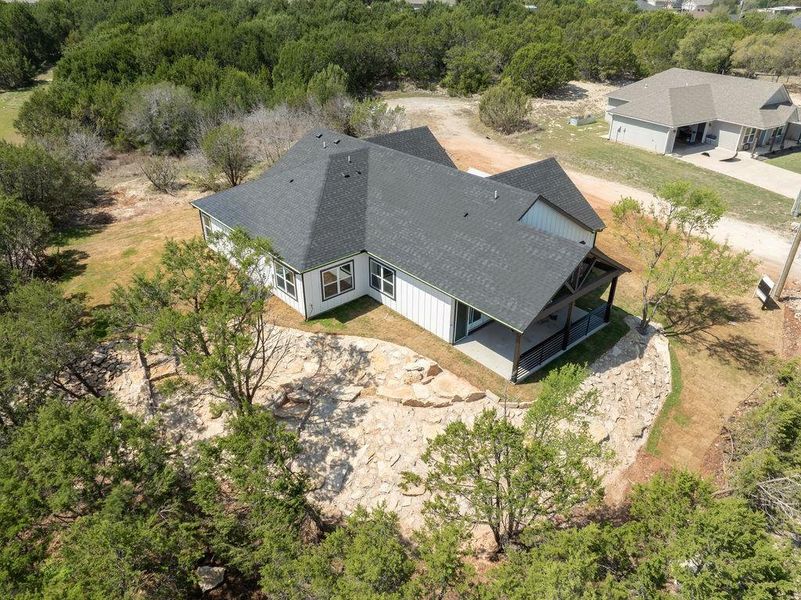 The open-concept layout offers both functionality and flow, ideal for entertaining or everyday living. The kitchen is designed to impress, featuring a pot filler, generous prep space, and a walk-in pantry with a convenient Costco door for easy grocery access. The primary suite serves as a private retreat, complete with a built-in Safe Closet for added peace of mind. Throughout the home, you’ll find quality finishes and custom touches that elevate the overall feel. Step outside to enjoy a welcoming front porch overlooking the community, along with beautifully landscaped outdoor space featuring custom stone steps—perfect for relaxing or hosting. Additional highlights include epoxy-coated garage floors and a custom wood dining table that conveys with the home. Located in the gated Canyon Creek community, this home offers the perfect balance of comfort, style, and unique features you won’t find in a typical new build.