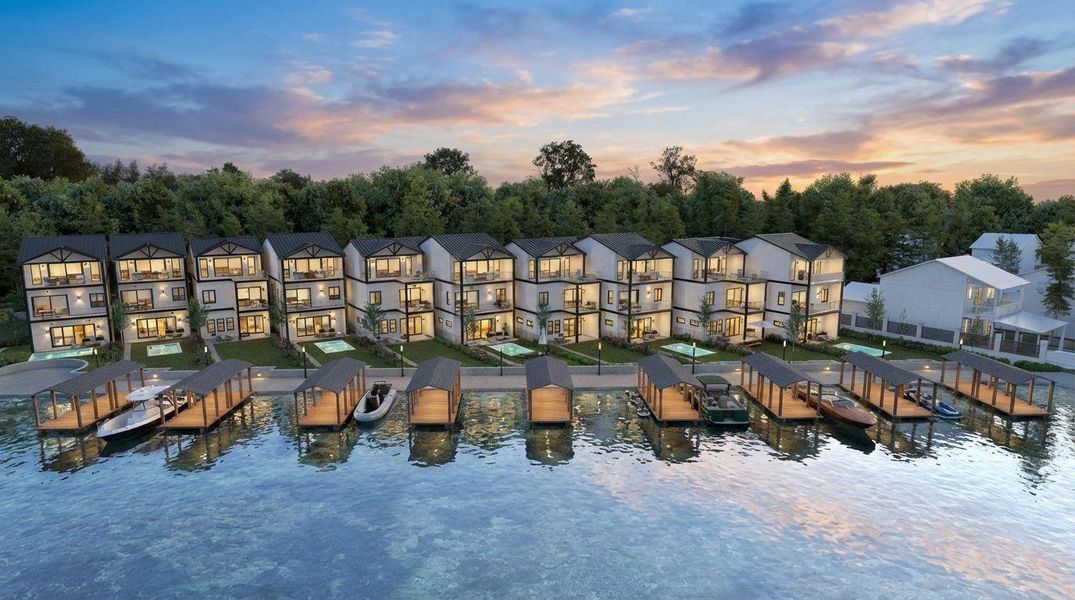 Experience refined waterfront living in this brand-new Modern Mediterranean lakefront masterpiece on Lake Conroe. Featuring 3 beds, 3.5 baths, private home office, and game room, this residence blends luxury with thoughtful design. Located in the gated Marina Court community, enjoy a scenic boardwalk,greenspace, and guest parking. Take in breathtaking lake views from multiple covered patios and the stunning rooftop deck—complete with gas and plumbing connections—perfect for elevated entertaining. A private boat dock offers direct water access for the ultimate lake lifestyle, while the backyard is pool-ready with a concrete retaining wall. Inside, wide-plank oak floors, soaring ceilings, solid core doors, and designer finishes impress throughout. The chef’s kitchen features Thermador appliances, pot filler, and soft-close cabinetry. Smart home automation, Cat6e wiring, elevator readiness, and high-efficiency HVAC enhance comfort and convenience in this exceptional new construction home.