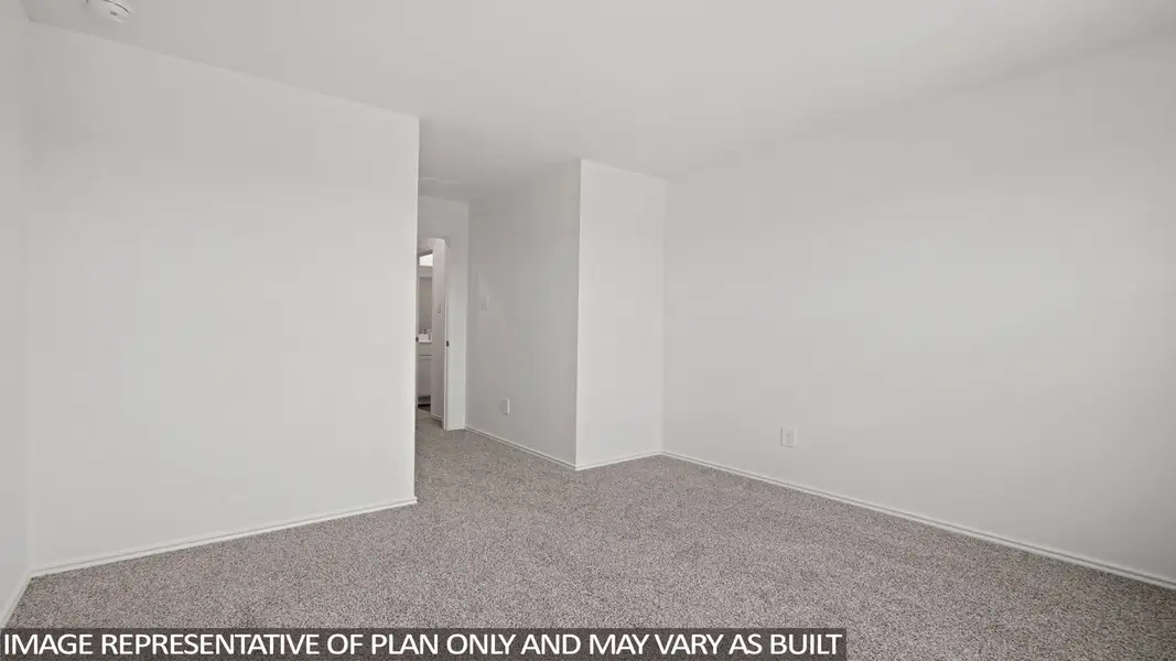 A hallway branches out from the game room, leading to the other three secondary bedrooms and the secondary bathroom. Each of the bedrooms feature carpet flooring, a bright window opening to the side of the house, and walk-in closets. The secondary bathroom is complete with vinyl flooring, a double sink, a linen nook, and a separate room consisting of a toilet and tub/shower combo.