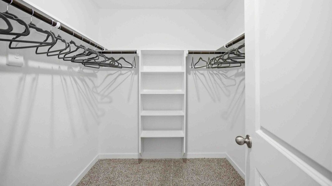 Upstairs, the two secondary bedrooms are located to the left, each with its own walk-in closet, providing plenty of storage space. The laundry room is conveniently located next to the secondary bedrooms, making laundry day a breeze. To the right of the staircase, you'll find the secondary bathroom, which features a one-sink vanity and a standing tub, offering a functional yet stylish space for family members and guests.