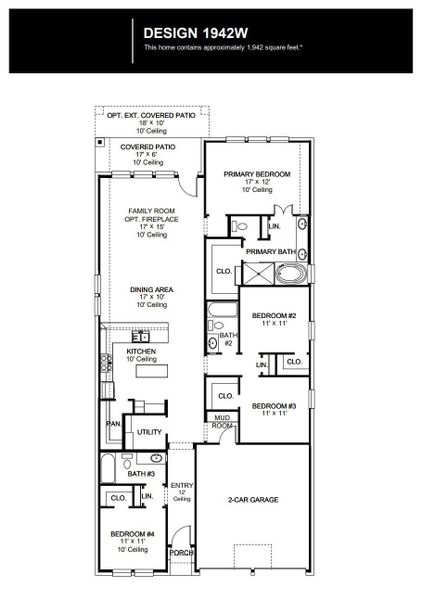 Entry welcomes you with a 12-foot ceiling. Open kitchen offers a center island, a 5-burner gas cooktop, and spacious pantry. Dining area flows into open family room with wall of windows. Secluded primary suite includes primary bath with dual vanities, garden tub, separate glass-enclosed shower and a large walk-in closet. Abundant closet space in the secondary bedrooms. Extended covered backyard patio. Mud room off the two-car garage.