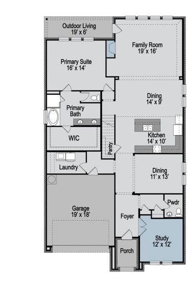 The Trinity Executive is designed for dynamic living, featuring 10’ ceilings and extended windows throughout. A vaulted ceiling in the large family room enhances the open-concept layout connecting to the gourmet kitchen, which includes a center island, walk-in pantry, and breakfast area. The main-floor primary suite offers a sloped ceiling, spacious walk-in closet, and a luxurious en-suite bath with Roman tub, dual vanities, a separate shower, and private toilet area. The foyer opens to an elegant staircase and an ideal home office. Upstairs, an oversized game room anchors three secondary bedrooms and two full baths. A powder room off the foyer adds everyday convenience.