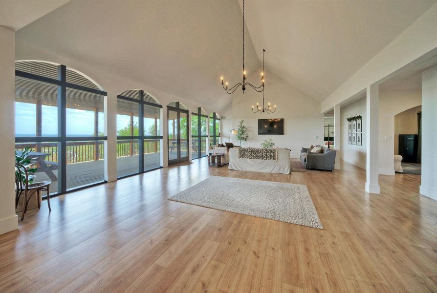 10 UNRESTRICTED ACRES • 2 FULL KITCHENS • MULTIPLE LIVING AREAS • VALLEY VIEWS • FIBER INTERNET Modern farmhouse estate just 10 minutes to Bastrop, 15 to Elgin, and 30 to Austin—combining size, usable land, and freedom rarely found this close to the city. This 2-year-old custom home offers 6–7 bedrooms including over 2,600 square feet of walk-out lower level with a full kitchen—ideal for multi-generational living, private guest quarters, or business use. The main level features a vaulted great room with a wall of glass capturing panoramic valley views. The newly completed kitchen includes quartz countertops, a large island, and extensive workspace. Easy conversion to gas cooking. The primary suite is oversized with a large bath, soaking tub, and curb-less shower. Upstairs bedrooms are connected by a central living/play area. An oversized laundry room adds everyday functionality. The land is 90% cleared and fully usable, with 80+ mature oak trees, fenced areas for horses or livestock, a garden space, private well, and a large covered deck overlooking the valley. Unrestricted property allows for business use, additional structures, animals, and long-term flexibility—rare to find with this level of home and acreage near Austin. Private setting. Usable land. Estate-scale home with real flexibility.