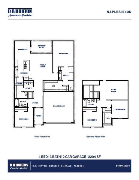Welcome to our Naples/E40N floor plan, located in the new Sunterra community! This is a two-story house that includes four bedrooms, three bathrooms, a game room and a two-car garage. This house spans 2,294 square feet and will be a lovely home for you and your family!