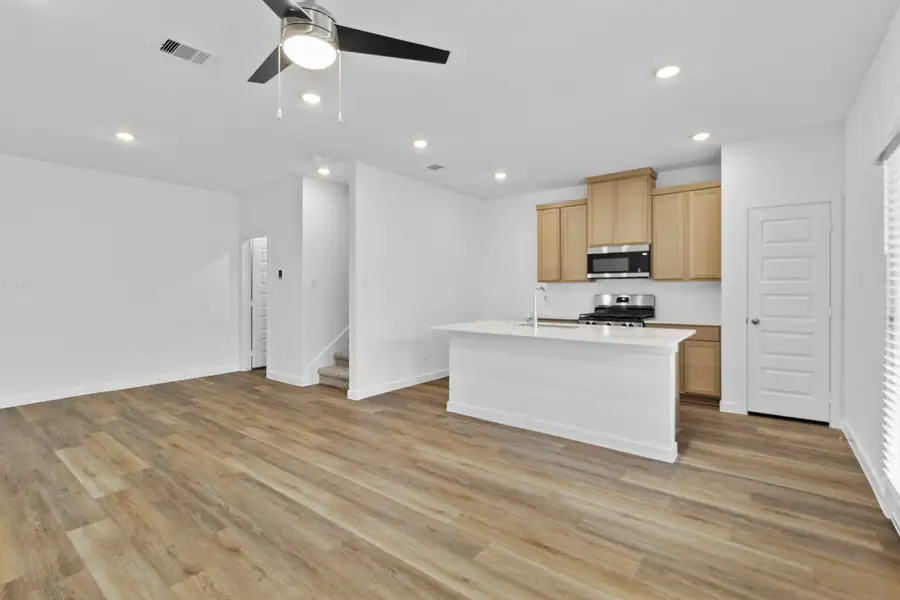 This thoughtfully designed two-story home offers 4 bedrooms, 2.5 bathrooms, a loft, and a 2-car garage. The open-concept layout connects the kitchen, dining, and living areas, creating a functional space for everyday living and entertaining. The kitchen features ample counter space, pantry storage, and a central layout. The first-floor primary suite includes a walk-in closet and private bath. Upstairs offers a versatile loft, three secondary bedrooms, and a full bathroom, providing flexibility for guests, work, or play. Additional highlights include energy-efficient construction, modern finishes, and a layout designed for comfort and convenience. Located in a growing community with convenient access to major highways, shopping, dining, and nearby city amenities, parks, and everyday conveniences.