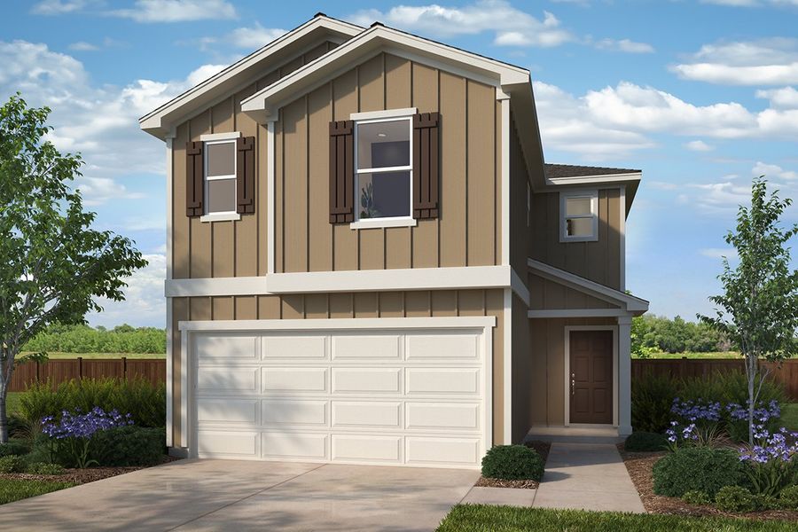 This beautiful, two-story home showcases a modern board-and-batten exterior for added curb appeal. Inside, discover an open floor plan with 9-ft. first-floor ceilings and sleek ceramic tile flooring at entry, great room and wet areas. The kitchen impresses with Whirlpool® appliances, granite countertops, Daltile® zellige tile backsplash, extended breakfast bar and Woodmont® Belmont cabinets in Espresso stain. Upstairs, the spacious primary bath offers a dual-sink vanity and garden tub/shower combination. Decorative touches include a Carrara-style entry door and Kwikset® SmartCode entry door hardware. Outdoors, enjoy the sunshine on the rear patio. A full sprinkler system helps keep the yard pristine.
