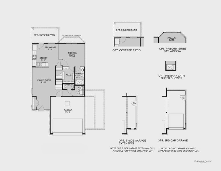 The Woodland plan is a 2-story home with 4 bedrooms, 2.5 baths, a downstairs primary suite, and an upstairs game room. All bedrooms come equipped with walk-in closets.