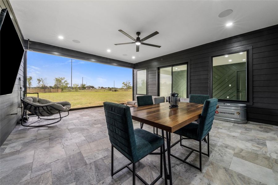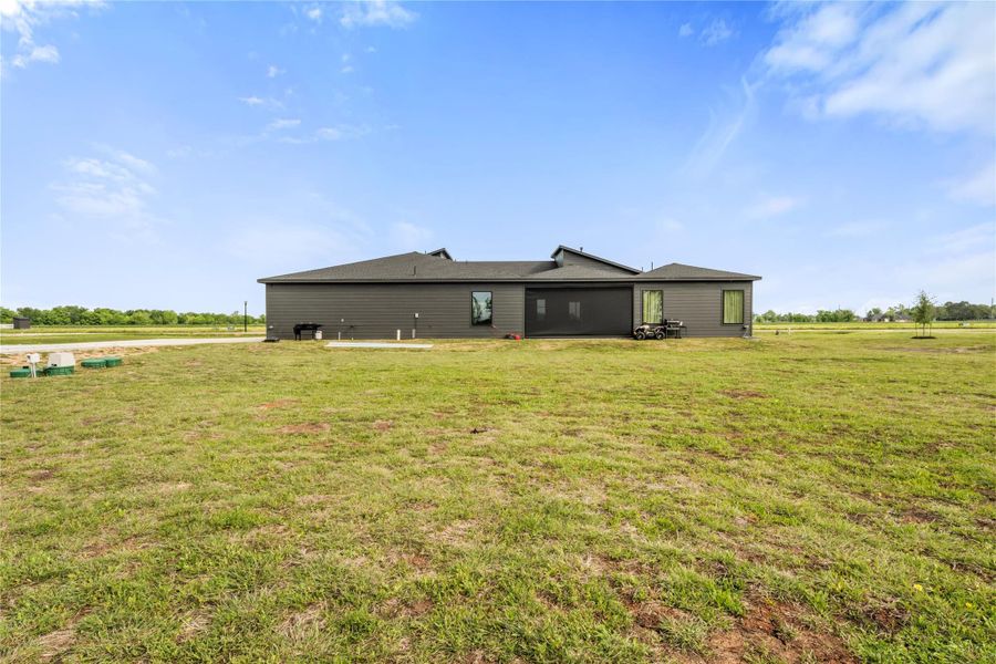 Striking, bold, and truly one of a kind, this modern estate in Sealy, TX redefines luxury living. Set on 1.2 acres, this 3,200 sqft custom home showcases rare architecture with dramatic lines, soaring 10 ft ceilings, and expansive open living spaces filled with natural light. The showpiece kitchen stuns with premium Bosch appliances, a massive waterfall island, leather granite surfaces, and custom cabinetry to the ceiling. Designed for unforgettable entertaining, walls of glass open to a resort-style covered patio with outdoor kitchen connections and built-in audio. The primary suite offers a spa-like retreat with sleek finishes and a frameless walk-in shower. Complete with a 3-car garage, extended driveway, and a dedicated concrete pad ready for a future detached 3-car garage or shop. A statement home unlike anything else on the market.