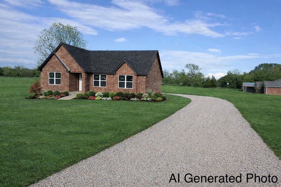 Welcome to your brand-new country retreat- where modern comfort meets peaceful rural living. This beautifully constructed brick home offers timeless curb appeal with classic gabled rooflines, and rich masonry. Inside you'll find a thoughtfully designed layout with no wasted space to be found. Construction is still underway but once finished, it will be the warm and inviting space of your dreams!